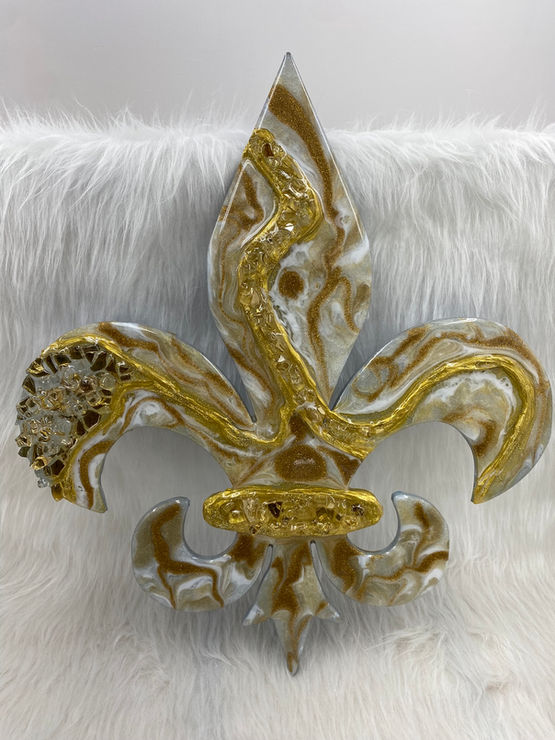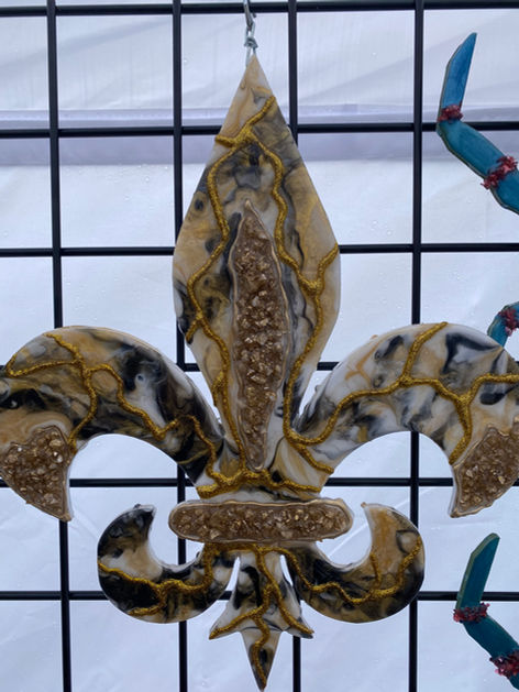 Hey there, welcome to our Resin Art Gallery! We're the masters of creating custom pieces that are so unique, you won't find anything like them anywhere else. Our oyster art is a real pearl in our collection, but we're not just shucking around - we can create anything your heart desires! Our fleur de lis are another favorite. Let's get cracking and turn your ideas into resin-tastic reality!